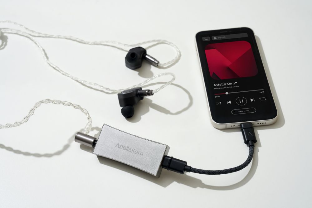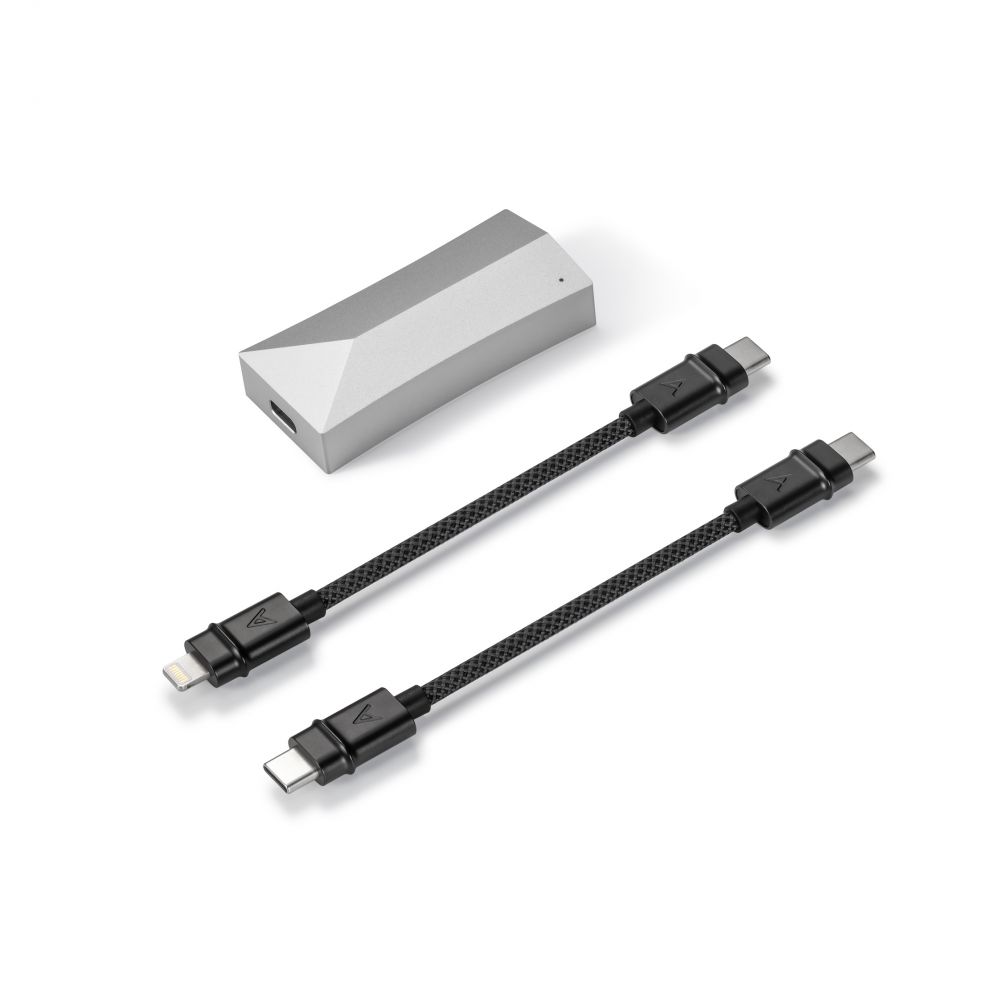 Le circuit d'amplification exclusif de l'AK HC4 garantit une puissance de sortie stable et un son hi-fi de première qualité. Des micro-résistances et des condensateurs de très petite taille garantissent une taille compacte sans perte de puissance. Pour que l'AK HC4 puisse être utilisé aussi bien avec des appareils Android qu'iOS, deux câbles doublement blindés de haute qualité sont fournis, l'un avec une prise USB-C et l'autre avec une prise Lightning.