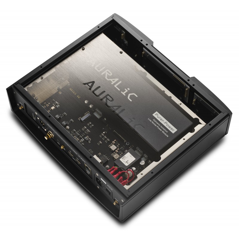 Der Auralic Aries G2.2 ist mit dem rauscharmen Purer-Power-Netzteil der neuesten Generation ausgestattet, das eine äußerst stabile und zuverlässige Stromversorgung für digitale Schaltkreise bietet. Jede Schaltung, die mit dem Audiosignal verbunden ist, einschließlich der galvanischen Trennung, hat ihre eigene, separate Stromversorgung. Dadurch wird ein extrem niedriger Rauschpegel von nur 0,8 Mikrovolt erreicht. Die Computerschaltkreise verfügen über ein rauscharmes Netzteil mit 27 Mikrovolt. Dieses fortschrittliche Stromversorgungsdesign stellt sicher, dass die digitalen Audioschaltkreise eine saubere und stabile Stromversorgung erhalten, die frei von Rauschen und Interferenzen ist, was zu einem besseren Klangerlebnis für den Hörer führt.