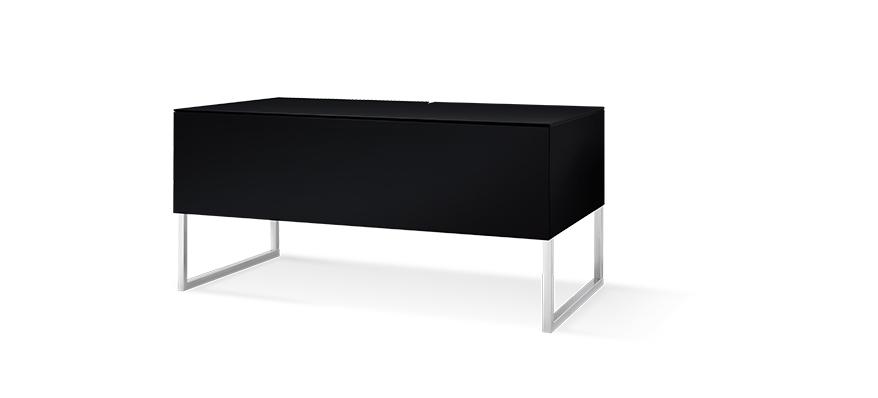 Sobre et raffiné, ce meuble dispose d’un compartiment bénéficiant d’une porte avec abattant capable de laisser passer les signaux infrarouges. Grâce à ses pieds amovibles, le Kahlm pourra être fixé contre un mur à la hauteur voulue. Egalement pratique, la partie arrière du Khalm a été pensée pour permettre un passage de câbles aussi bien par le fond que par le dessous du meuble.