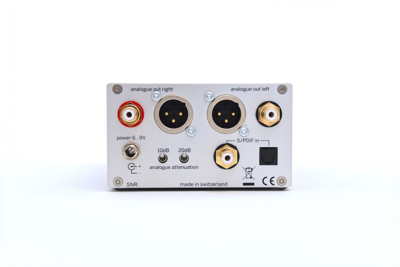 Der DAC205 nimmt über seine S/PDIF- oder TOSLINK-Eingänge eingehende digitale Audiodaten entgegen, wandelt sie nahtlos in analoge Audiodaten um und gibt über seine XLR- oder Cinch-Ausgänge einen reinen Klang aus. Zwei verschiedene Geräte mit digitalen Ausgängen können gleichzeitig an den DAC205 angeschlossen werden. Der aktive Eingang wird ganz einfach über den Eingangswahlschalter an der Vorderseite ausgewählt. Der DAC205 verwendet nicht weniger als vier D/A-Wandler pro Audiokanal, die zur Verbesserung des Signal-Rausch-Verhältnisses parallel arbeiten. Mehrere Schemata zur Neuverschlüsselung des Signals werden kombiniert, um eine hohe Jitterdämpfung zu erreichen.