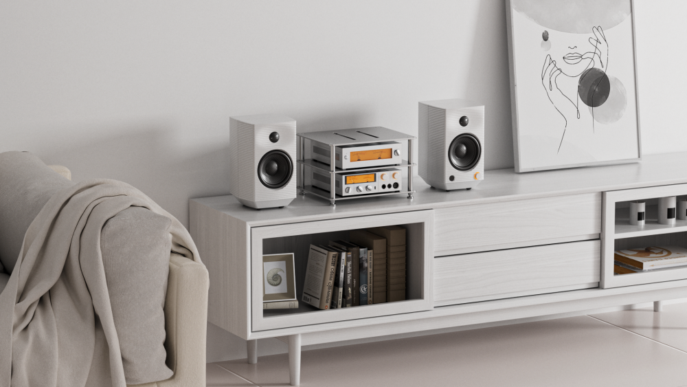 Chaque paire d'enceintes dispose d'une alimentation indépendante de 120 watts et d'une amplification à quatre canaux de 60 watts pour les basses fréquences et de 20 watts pour les aigus. Celle-ci est réalisée à l'aide d'amplificateurs TI de classe D de haute qualité. Les boîtiers en aluminium moulé sous pression suppriment efficacement les résonances et garantissent une diffusion précise du son. Un contrôle électronique du volume avec une distorsion extrêmement faible et un égaliseur PEQ à 10 bandes offrent un contrôle précis du son. Un réglage des graves et des aigus en plusieurs étapes ainsi qu'une extension des graves profonde jusqu'à 50 Hz permettent un réglage précis en fonction de l'acoustique de la pièce et du genre musical.