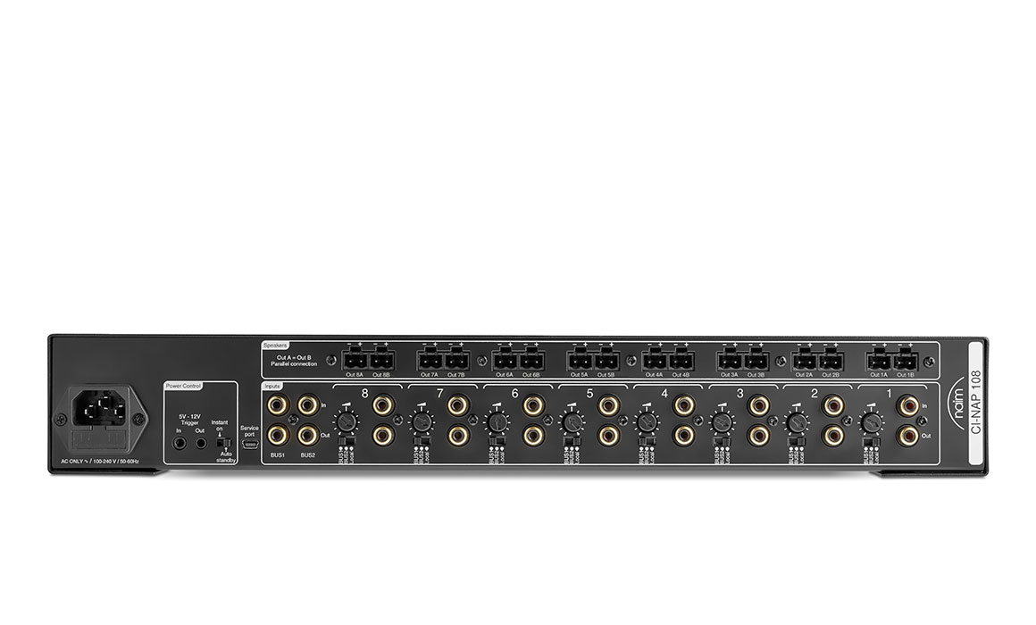 S’installant facilement, rapidement et discrètement (montage en rack), le CINAP108 permet de couvrir de vastes zones d’écoute grâce à ces 8 canaux disponibles, cela sans compromettre la qualité audio signée Naim, soit un son de référence mondiale. Les entrées locales permettent également la séparation de 8 flux différents, pour toujours plus de flexibilité. Avec le streamer et amplificateur CI-Uniti 102 et l’amplificateur mono et lignes 70V/100V CI-NAP 101, il constitue le meilleur de l’électronique Naim dédiée à l’audio intégré (pour la maison, les commerces, les bateaux…) mais aussi en complément de processeurs audio-vidéo pour marier qualité sonore et puissance.