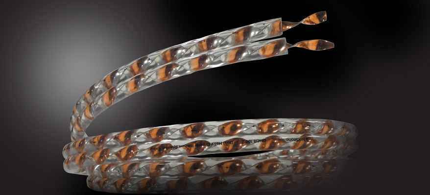 Le câble DHCR (Dual Helix Copper Ribbon) innove par une architecture des conducteurs inédite pour allier une grande capacité en courant et une réponse impulsionnelle sans faille. Ses deux lames de cuivre spiralées transmettent tout le signal avec une immunité aux perturbations renforcée. Ce câble est conçu pour être associé aux meilleures enceintes, même de forte puissance.