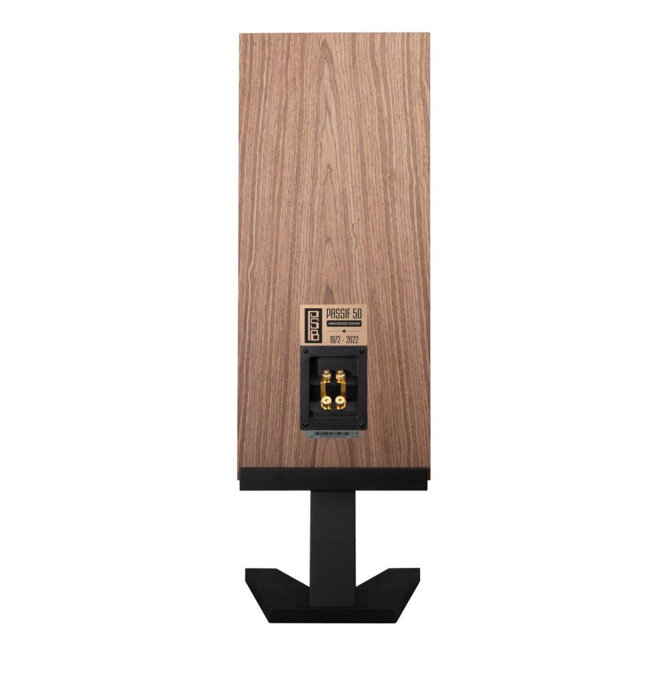 En plus de leurs boîtiers en placage de noyer, de leurs grilles en tissu et de leurs pieds dédiés, les Passif 50 possèdent de nombreux éléments esthétiques de l'édition anniversaire. Il s'agit notamment d'une tirette sur la grille avant, qui porte le logo original de PSB, et d'une plaque sur le panneau arrière, ornée d'une feuille d'érable et de l'inscription "Passif 50 - 1972-2022". Avec sa technologie de pointe et son magnifique design rétro, le Passif 50 rend hommage au passé, embrasse l'avenir et offre un son fidèle à la nature.