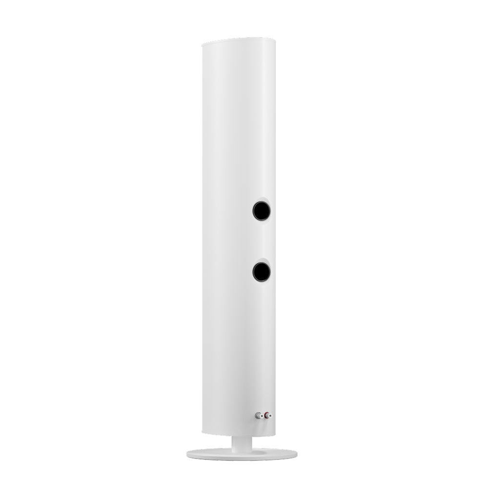La forme ovale du boîtier, avec son aspect minimaliste et industriel, s'intègre harmonieusement dans tout espace de vie. La surface sablée confère aux enceintes une finition élégante et durable.