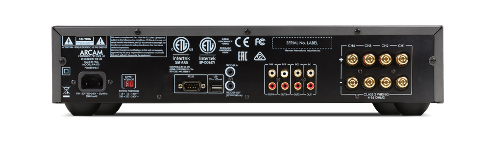 L'amplificateur de puissance haute performance Arcam PA 410 fournit 4 canaux d'amplification efficace en classe AB. Avec une puissance impressionnante de 70 W par canal, le PA410 est conçu pour offrir la plus grande flexibilité et la plus grande puissance sans compromettre la qualité.