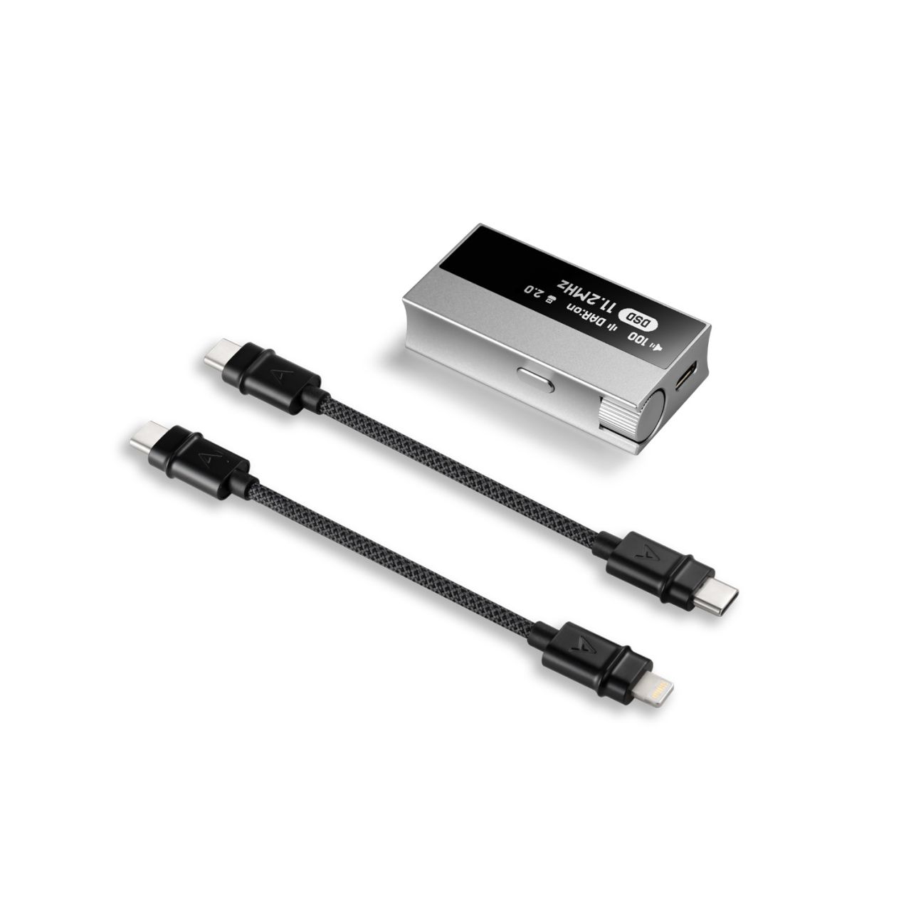 Contenu de la livraison : Astell&Kern ; AK HC5, câble court USB-C vers USB-C, câble court USB-C vers Lightning, étui de protection