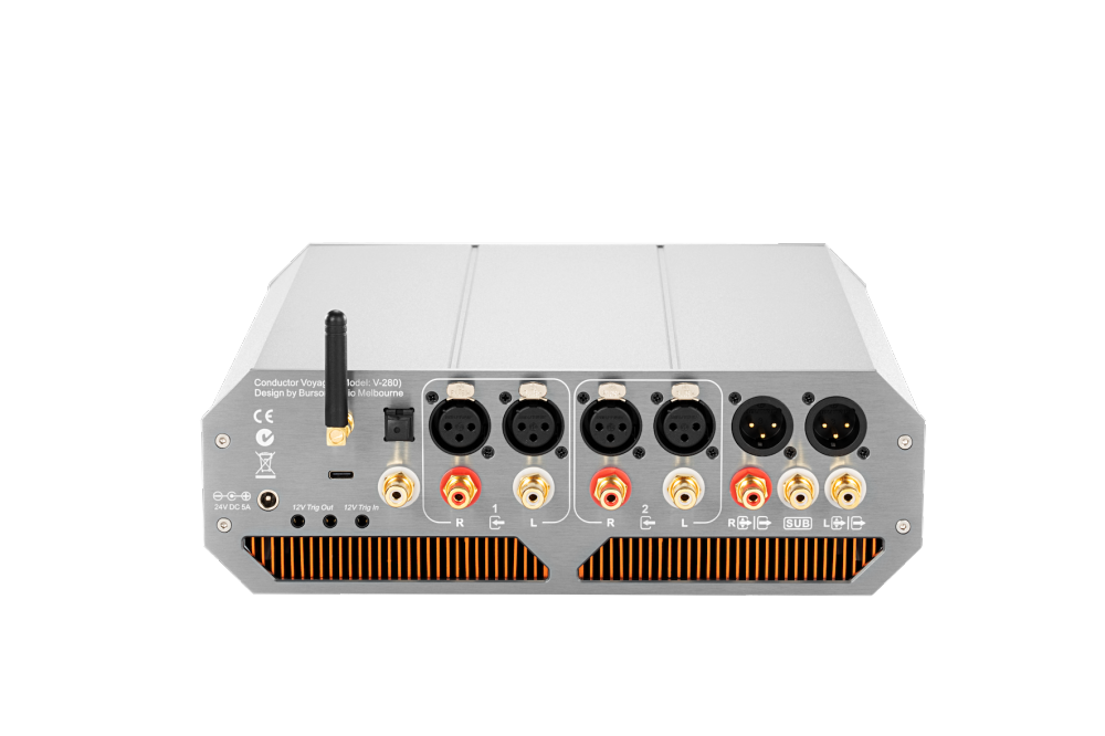 Avec une puissance de sortie allant jusqu'à 10 watts par canal, le Conductor Voyager Deluxe est capable d'alimenter avec aisance les casques les plus exigeants, comme les modèles magnétostatiques. Quatre transistors de gain à haute intensité par canal assurent le contrôle, la dynamique et une énorme expressivité. L'alimentation électrique est basée sur la Max Current Power Supply de Burson avec sept modules Silent Power à ultra faible bruit, qui garantissent un fond sans le moindre bruit parasite.