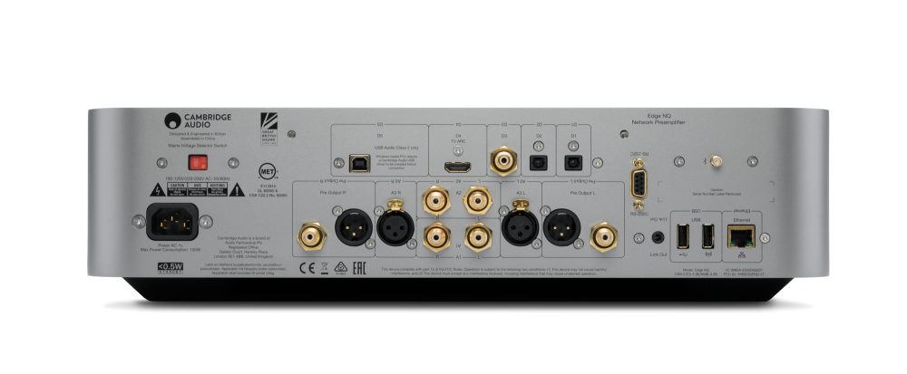 Avec une multitude de connexions incluant le coaxial numérique, ARC (Audio Return Channel), USB et S / PDIF, nos ingénieurs se sont assurés que tout votre contenu numérique puisse être apprécié, jusqu'à 32bit / 384kHz et DSD 256. Edge NQ offre un son incroyablement révélateur avec une tonalité détaillée, un son rythmique et une basse tendue.