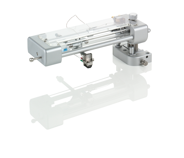 Le moteur à courant continu et à couple élevé, découplé de la platine, met en rotation sans forcer un plateau d’acrylique à haute densité de 70 mm d’épaisseur, réalisé en usinage de haute précision.