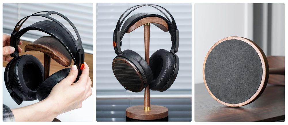 Der FiiO HS21 Kopfhörerständer ist aus massivem Walnussholz mit schöner Textur gefertigt. Die bogenförmige Ablagefläche sorgt dafür, dass der Kopfhörer sicher platziert ist und der Kopfbügel seine Form behält. Der Ständer passt für Kopfhörer beliebiger Marken und Grössen. Die Unterseite des Sockels besitzt eine Anti-Rutsch-Beschichtung für einen festen Stand.