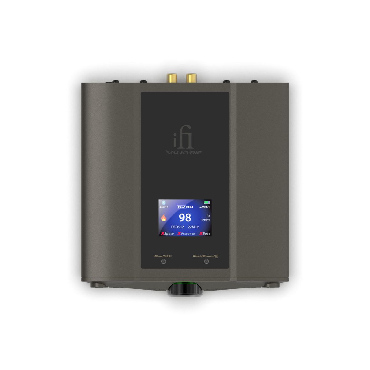 Er bietet eine Spitzenleistung von 5’700 mW, innovative K2- und K2HD-Filtertechnologie, 8 digitale Filter, 3 analoge Filter, verlustfreies Bluetooth, xMEMS-Unterstützung und eine Akkulaufzeit von bis zu 18 Stunden. Das Highlight ist die digitale und analoge Signalverarbeitung. Vier Burr-Brown-DACs wandeln alle Signale, die über USB, COAX, optisch oder Bluetooth übertragen werden. Ein High-Performance-FPGA-Chip kann im Remastering-Modus PCM- und DSD-Signale in DSD512 oder DSD1024 upsampeln. Die erwähnten K2- und K2HD-Filter lassen sich ebenfalls per Auswahl aktivieren. Sie stellen die Wärme und Emotionen analoger Aufnahmen wieder her und sorgen dafür, dass der digitale Stream niemals kalt oder klinisch klingt. Zusätzlich zu den digitalen Filtern verfügt er über die analogen Filter X-Bass (Bass-Boost), X-Space (erweiterte Räumlichkeit) und X-Presence (Mitten-Boost). Mit all diesen Filtern kann man den Valkyrie perfekt an seinen Geschmack und seinen Kopfhörer anpassen. Valkyrie besitzt einen unsymmetrischen 3.5 mm und einen symmetrischen 4.4 mm Kopfhörerausgang. Der Solid-State-Verstärker liefert eine Dauerleistung von über 2 Watt, sodass er selbst leistungshungrige Kopfhörer spielend antreibt. Dank einer sehr niedrigen Ausgangsimpedanz von weniger als 0.5 Ohm können aber auch empfindliche In-Ear-Ohrhörer problemlos betrieben werden. Zum Anschluss an Aktiv-Lautsprecher oder eine Endstufe stehen RCA-, 3.5 mm- und 4.4 mm-Line-Ausgänge zur Verfügung. Vier verbaute Standard-21700E-Akkuzellen bieten enorme 20’000 mAh Leistung, was für eine Laufzeit von bis zu 18 Stunden ausreicht. Aufgeladen wird Valkyrie ganz einfach per USB-C mit dem mitgelieferten iFi iPowerX Netzteil.