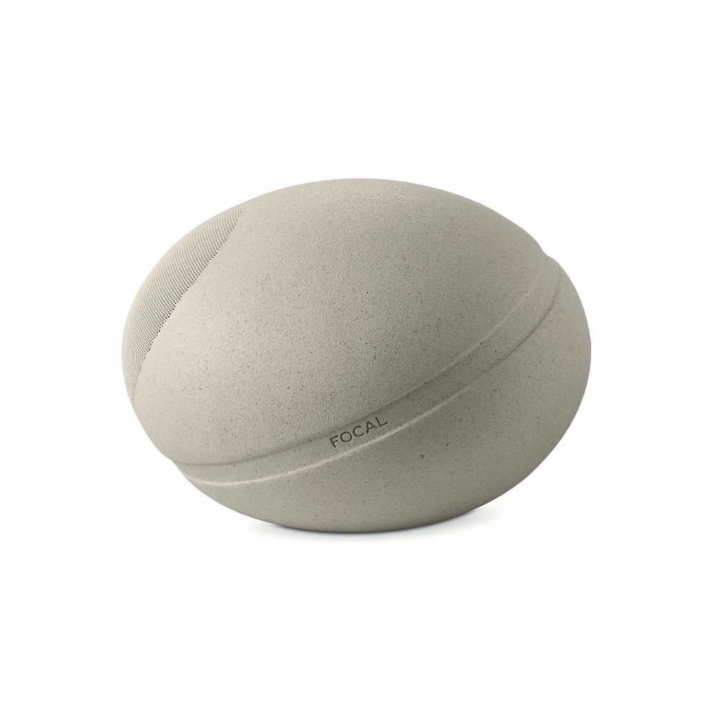 Die äußere Oberfläche ist wie ein Kieselstein geformt und weist einen strukturierten, steinähnlichen Effekt auf, der für einen einzigartigen mineralischen Look sorgt. Die beiden Oberflächen - Basalt und Kalkstein - machen diesen Lautsprecher so diskret wie raffiniert.