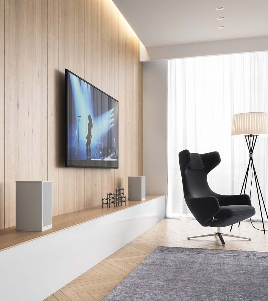 Schliesse deine Ace 30 Wireless via HDMI eARC an oder mittels opt/koax Kabel. Falls dein TV über den WiSA-Standard verfügt, kannst du die Speaker sogar ganz kabellos mit dem TV koppeln.