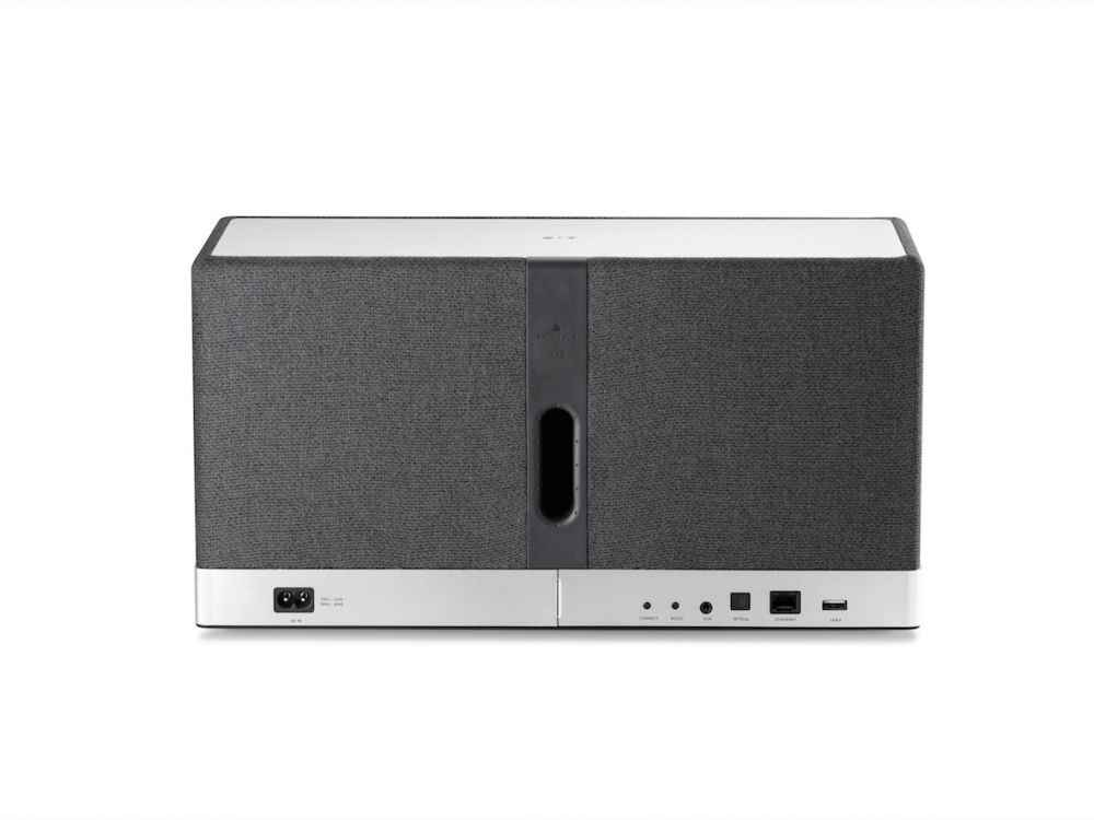 Die AIO hat ein Holzgehäuse und ist mit zwei Hochtönern mit 25 mm Seidenkalotte und zwei 10 cm Mittel-/Tieftönern ausgestattet. Diese 2 x 2-Wege-Konfiguration sorgt für echten, detaillierten Stereoklang mit viel Tiefe. Eine Bassreflexöffnung an der Rückseite verstärkt die tiefen Frequenzen und sorgt so für zusätzliche Leistung.