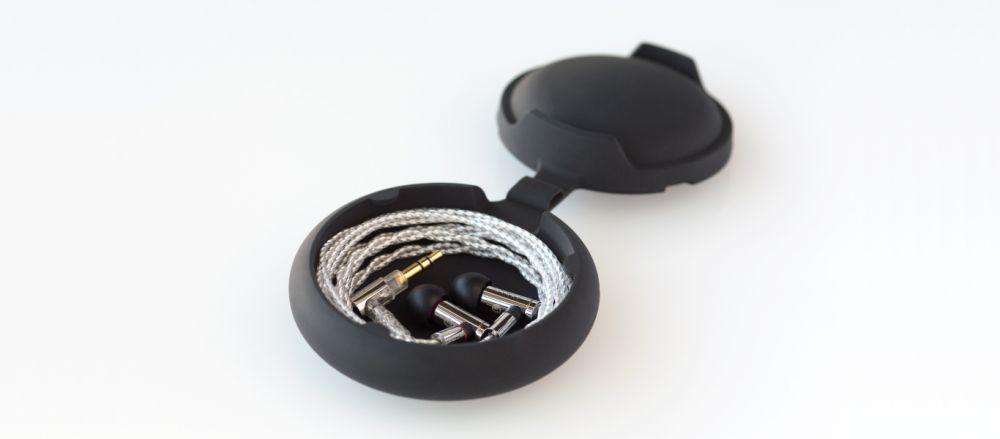 L'étui de transport en silicone permet de ranger facilement les câbles en les enroulant. Les écouteurs mêmes sont maintenus de manière sûre entre des bombements plats en silicone et le couvercle