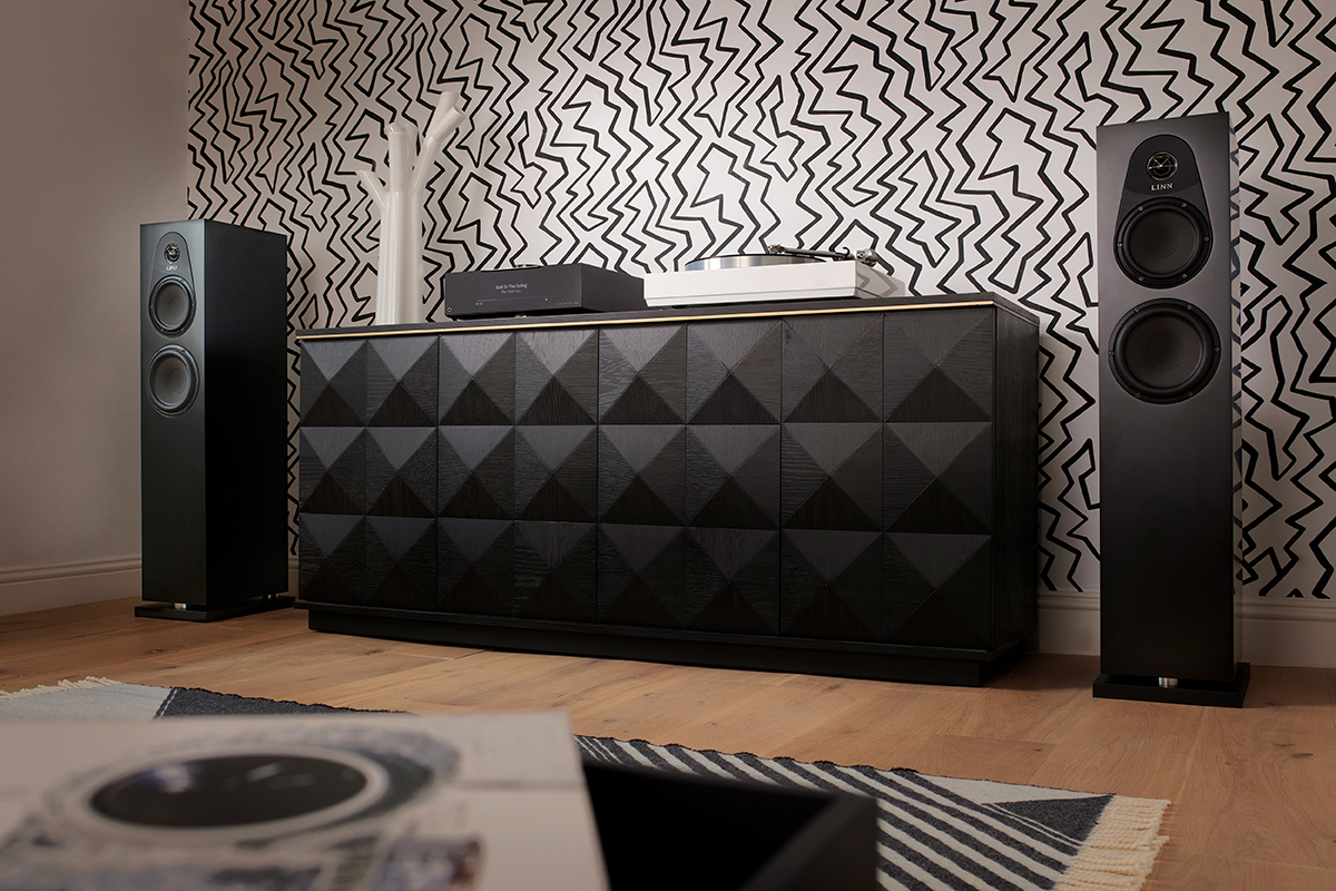Inspirée de notre enceinte phare 360, une garniture montée sur aimant présente de fines rainures concentriques rappelant la surface d'un disque vinyle, ainsi qu'un logo Linn électroformé qui sert de protection au tweeter.