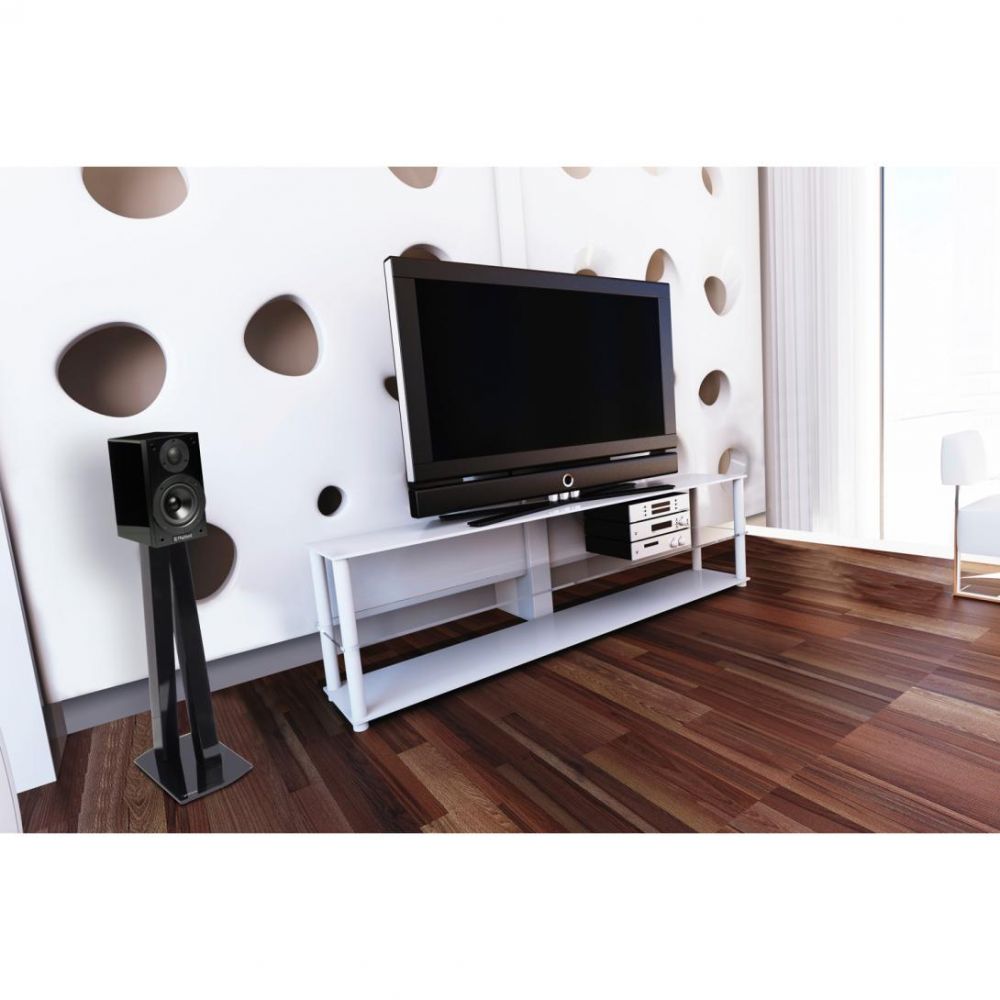 Parfaitement campé tel un dieu égyptien sur sa base en verre laqué, le Walk Stand combine dynamique et stabilité. Son design original mettra en valeur les enceintes placées à son sommet.(H 722 mm)