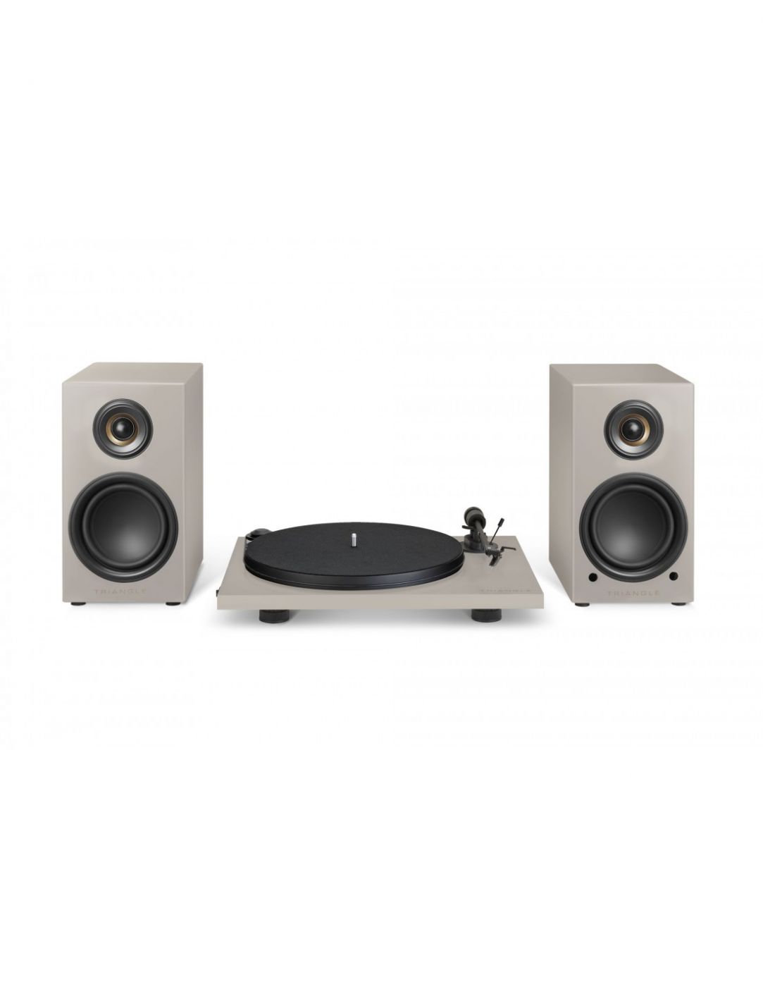 Conçue par Pro-Ject, la platine TRIANGLE est compatible 33 et 45 tours. Elle bénéficie d’un entrainement par courroie, d’un bras en aluminium avec roulements spahirs ainsi que d’un moteur à faibles vibrations. Le bras et la cellule sont pré- réglés pour permettre une mise en place relativement simple. Cette platine vinyle bénéficie d’une cellule Ortofon OM-10E. Le câble phono Pro-Ject Connect It E fourni dans le pack bénéficie de conducteurs en cuivre HP-OFC et ses fiches RCA sont plaquées or. Couvercle de protection inclus.